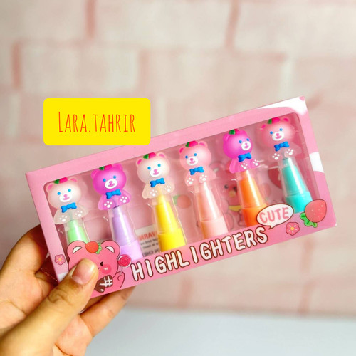 ست ۶ عددی هایلایتر فانتزی خرس مهربون صورتی